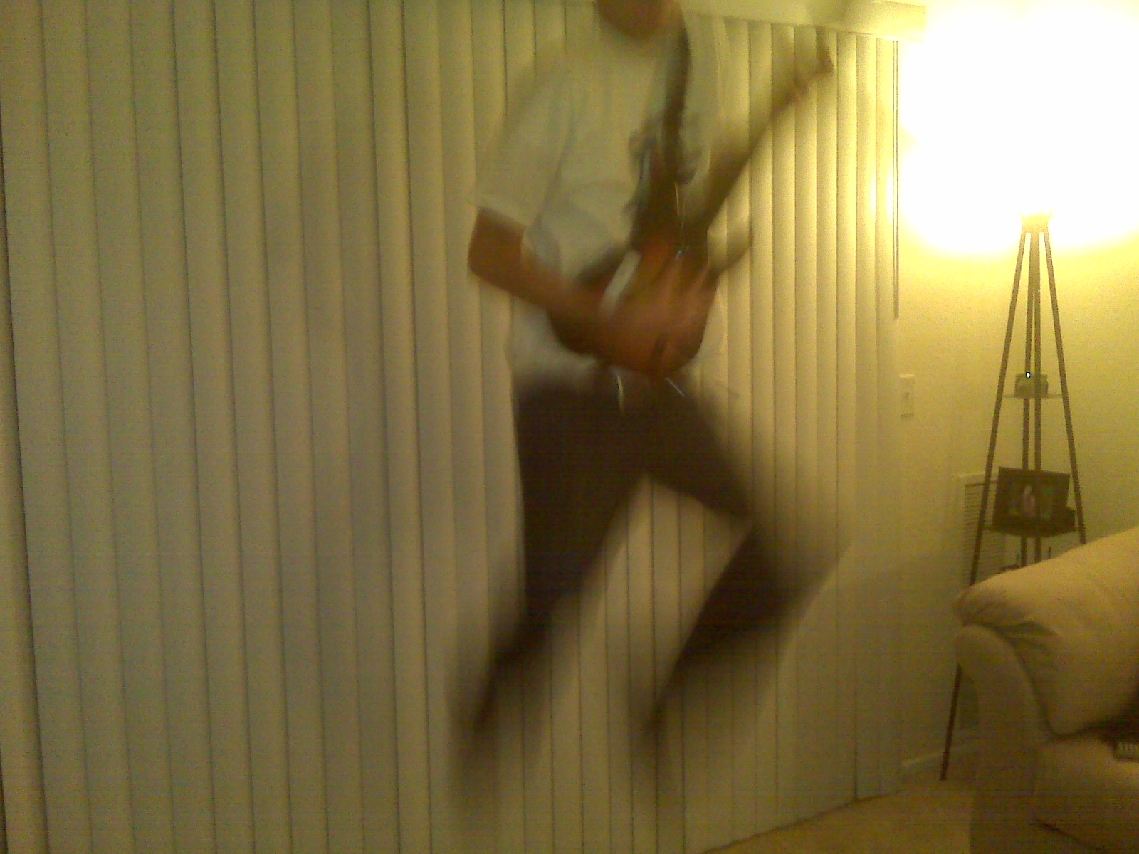 Slide strumming, reverse tap fretting, AND the splits? Must be the shirt.